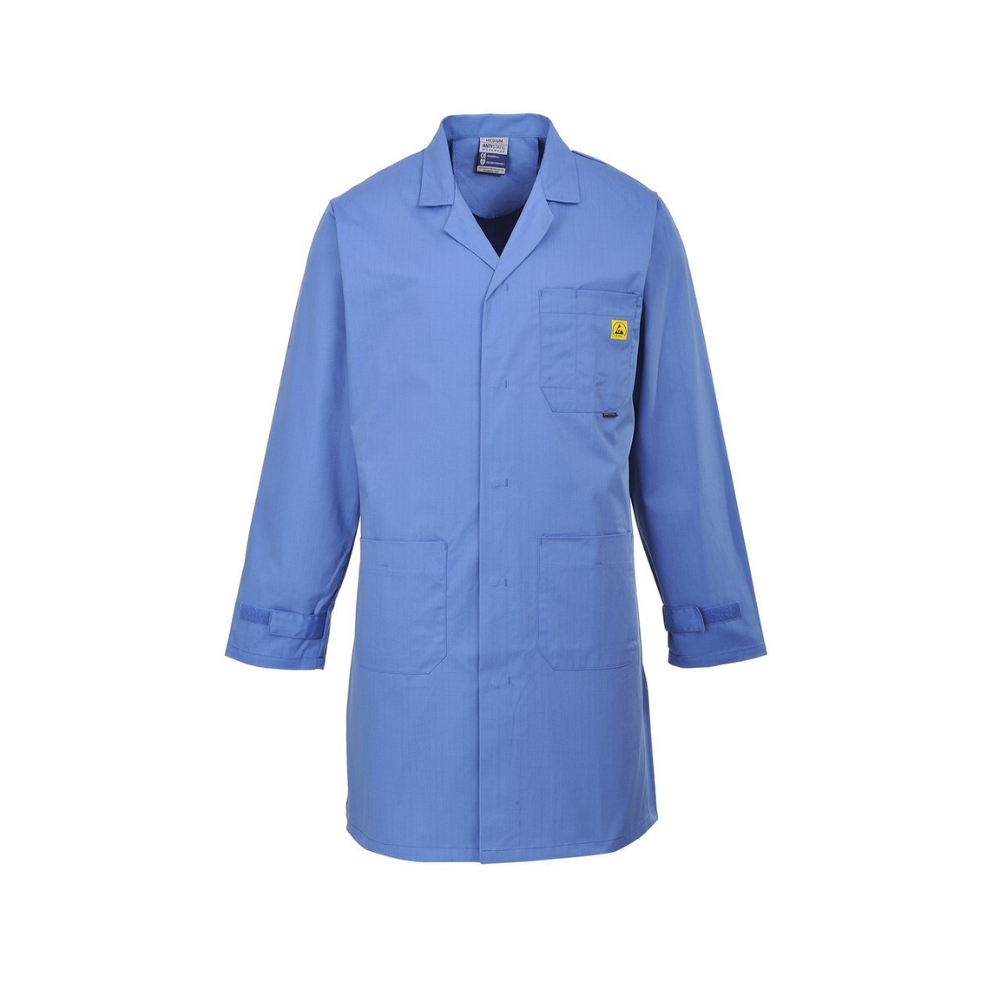 98% Polyester, 2% Conductive Yarn Blue,White Esd Antistatic Apron, For Laboratory