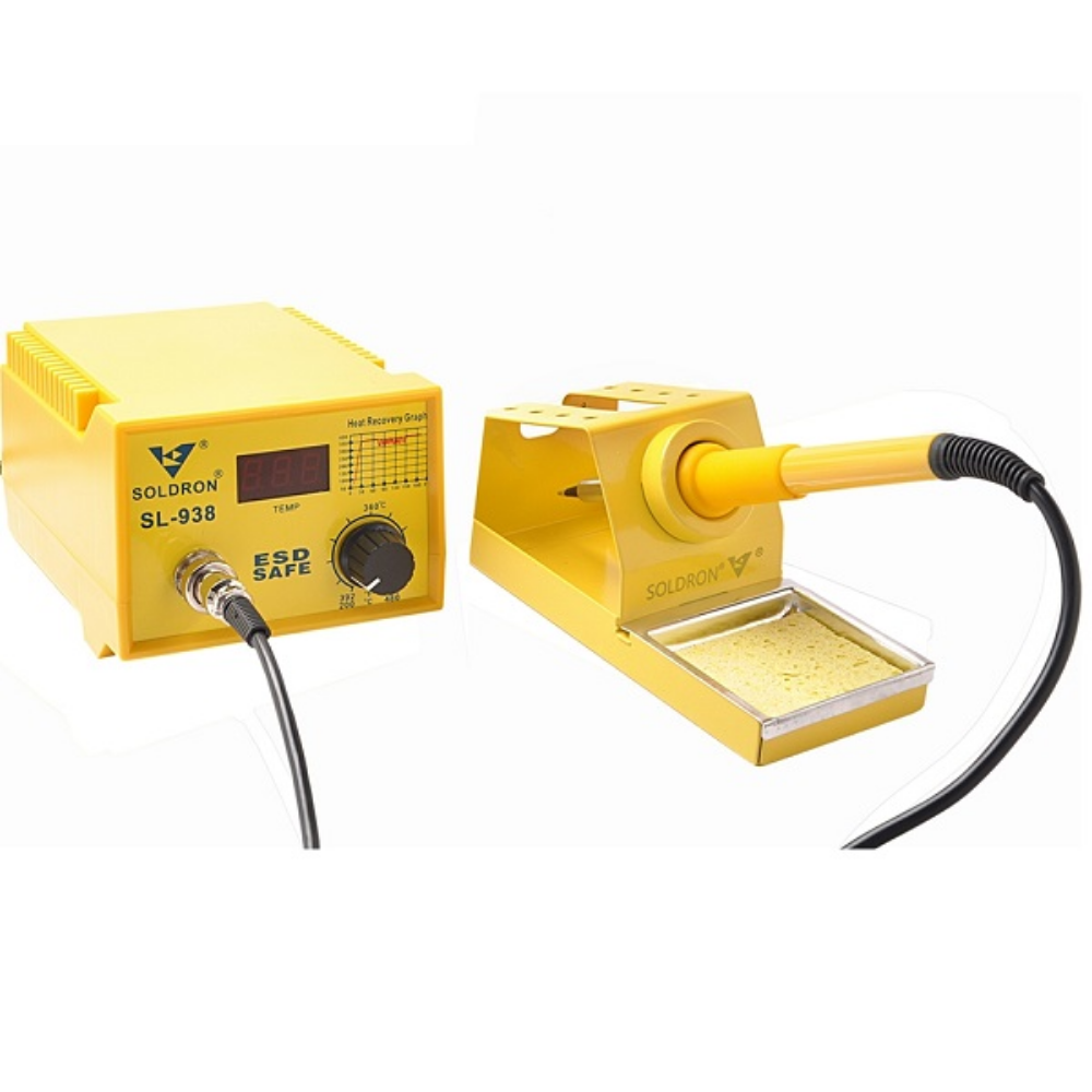 The Soldron 938 Soldering Station is a reliable and popular choice for a wide range of electronics soldering applications, balancing performance with affordability. This station is known for its fast heat recovery and stable temperature control, delivered through its durable heating element. Its compact design and analog temperature dial make it easy to use for both beginners and experienced technicians performing general repair and PCB assembly. Crucially, the ESD-safe housing provides essential protection for sensitive electronic components, making the Soldron 938 a dependable and cost-effective workbench essential